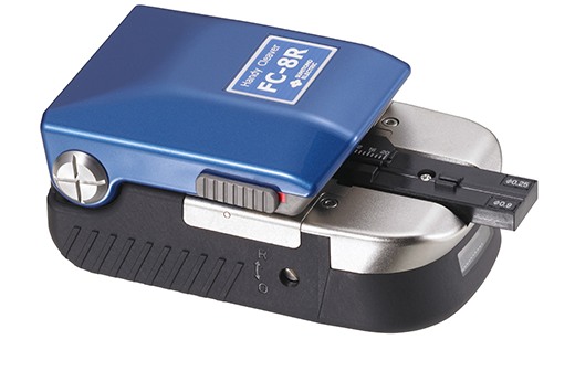 FC-8R-FC är en handhållen fiberrkap för upp till 12 fiberband med automatiskt roterandeblad samt uppsamlare.